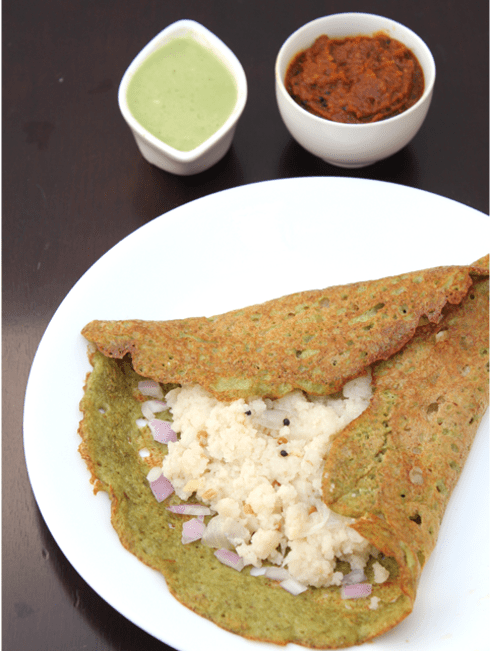 / Pesarattu Upma with Ginger Chutney and Coconut Chutney